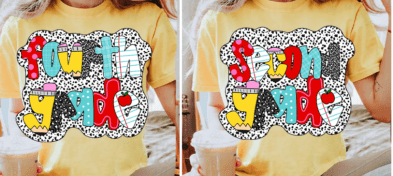 Choose between Direct to Film or Sublimation transfers. Please remember any white in the design will not be printed as a sublimation as sublimations do not have white ink.